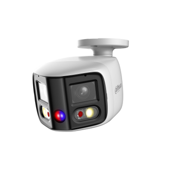 De Dahua TiOC bullet IPC-PFW3849SP-A180-E2-AS voert een 180° groothoekverbindsbeeld uit en is voorzien van lage luminante en high-definition beeldweergave. Door slim gebruik te maken van ingebouwd warm licht en IR-LED is de verlichtingsafstand 25m. en de warmlichtafstand 20 m. De TIOC camera's bevatten een rood en blauw flits alarm en een sirene alarm voor actieve afschrikking. De camera is uitgerust met een ingebouwde microfoon en luidspreker. Mocht er een ongewenst persoon zijn dan kunt u deze dus waarschuwen via het lichtalarm, sirene en toespreken via de luidspreker. Al deze functies zijn in-en uit te schakelen met één tik via alarmuitgang.