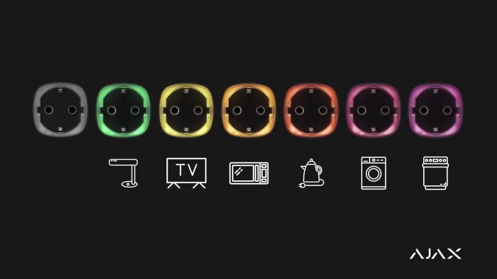 La prise Ajax est équipée d'un indicateur LED qui indique la quantité d'énergie consommée par l'appareil. Plus le violet est proche, plus la facture d'électricité est élevée.